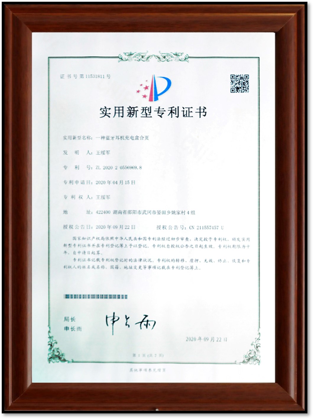 • 實(shí)用新型專(zhuān)利證書(shū)